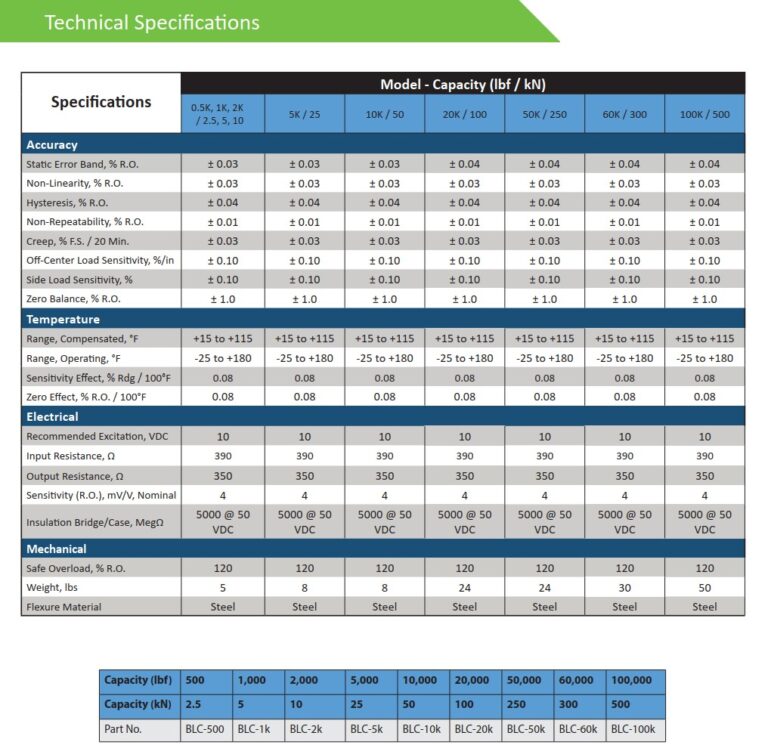 • Capacities from 500 – 112,000 lbf, or equivalent kgf/Newton