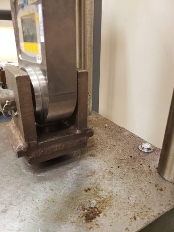 What happened: Another setup where a small pin is used in a larger hole, producing clearance, impact loading, and uneven contact. In addition to the large clearance for the pin, this setup is also wider than it needs to be.